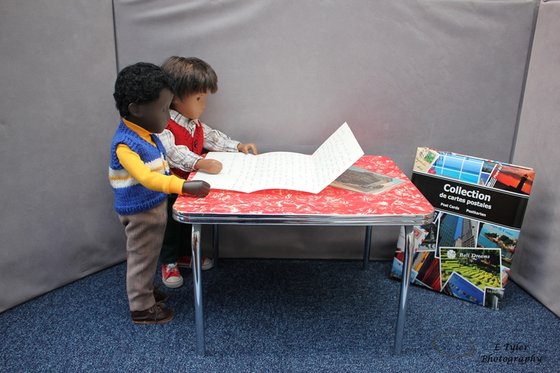 Oh look it says here that Sasha has sent us some postcards that are 'a trip through time'. Henry reads.